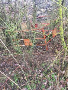 - A l’examen des déchets on peut évoquer une entreprise du BTP. On retrouve dans la sapinière qui jouxte la parcelle 49 des barrières marquées du nom de La Colas, qui entourent une plaque d’égout visiblement. Bien sûr des déchets autres que ceux de cette entreprise ont pu y être déposés.