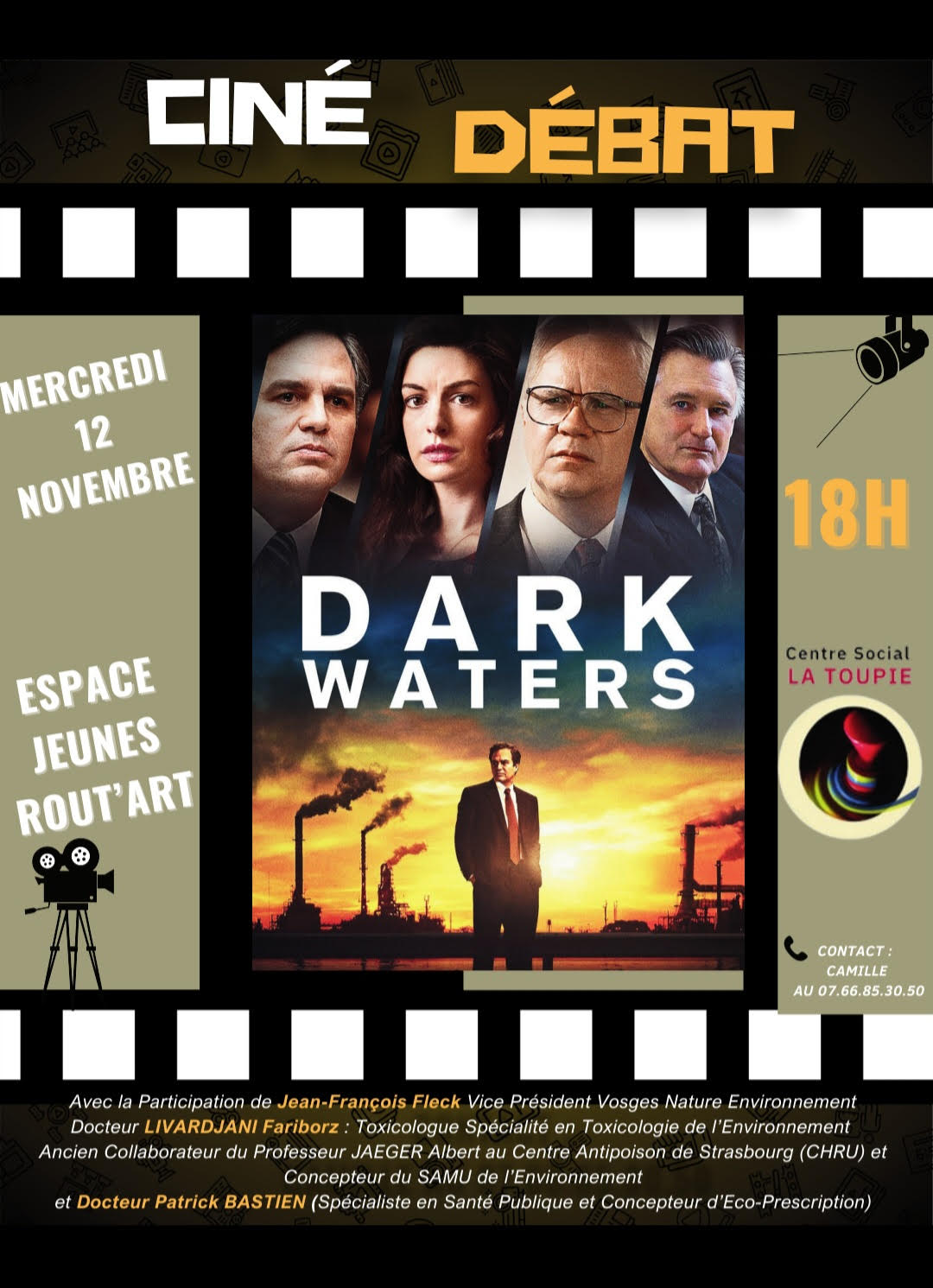 Dark Waters retrace l’affaire Dupont de Nemours (fabriquant de revêtements antiadhésifs) aux USA, condamné à indemniser de nombreuses victimes de ses contaminations par les PFAS.